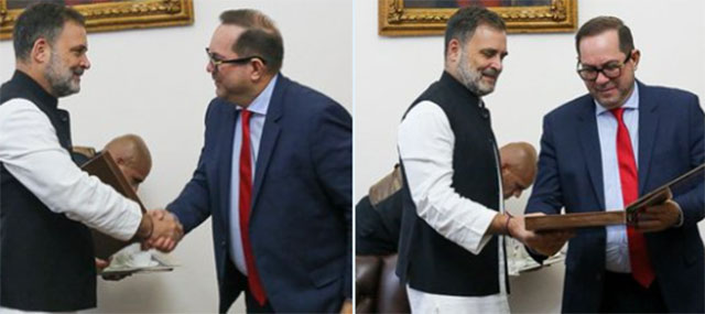 कांग्रेस के पूर्व अध्यक्ष और लोकसभा में विपक्ष के नेता राहुल गांधी की विदेश यात्रा एक बार फिर से मजाक बन गई है। कांग्रेस IT सेल की ओर से फैलाई गई फर्जी खबर से राहुल गांधी और कांग्रेस पार्टी की खूब किरकिरी हो रही है। असल में कांग्रेस आईटी सेल से जुड़े लोगों ने फेक न्यूज फैलाई कि राहुल गांधी ने कोलंबिया के राष्ट्रपति लिडियो गार्सिया से मुलाकात की है। लेकिन आपको जानकर हैरानी होगी कि लिडियो गार्सिया कोलंबिया के राष्ट्रपति हैं ही नहीं। लिडियो गार्सिया कोलंबिया के सीनेट यानी संसद के अध्यक्ष हैं, जो भारत में स्पीकर पद जैसा होता है। देखिए कांग्रेस आईटी सेल के पक्षकारों की ओर से फैलाई गई फर्जी खबर की झलक-